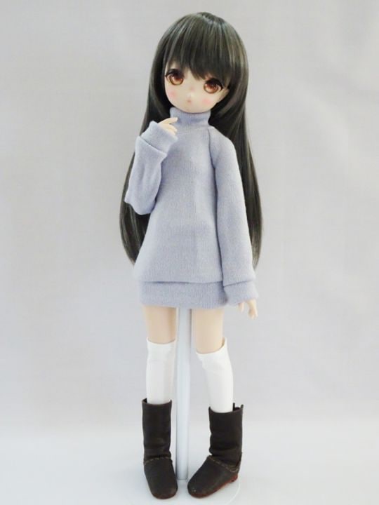 MDD(もちあし)/アゾン45/DDP タートルネックワンピース(水色×紺)