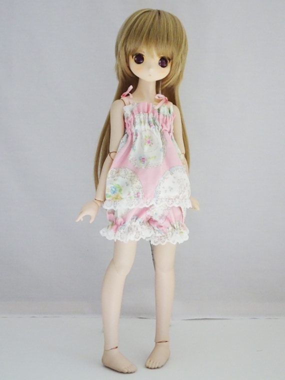 40cm~60cmフリーサイズ キャミソール&ドロワーズ*ルームウェアセット(ピンク)