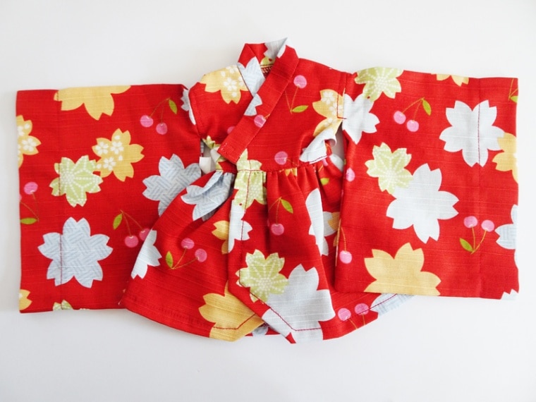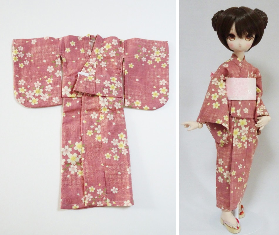 【単品】MDD/アゾン45 着物ワンピース(桜とさくらんぼ/赤)