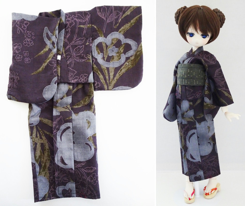 【単品】MDD/アゾン45 着物ワンピース(クラシカルフラワー/セピア)