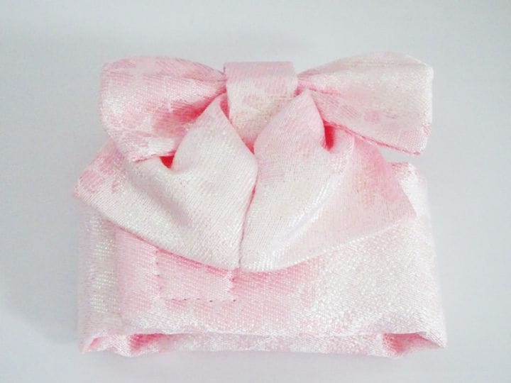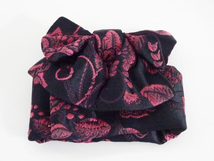 【単品】フリーサイズ お花巾着(キラキラサーモンピンク/和素材)