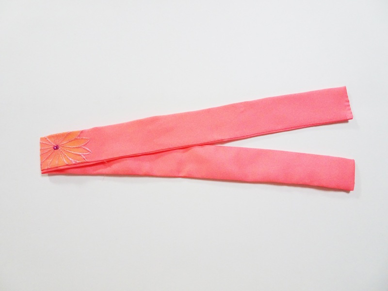 【単品】40cm~60cmフリーサイズ 帯揚げ(サーモンピンク桜刺繍)