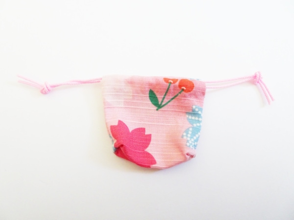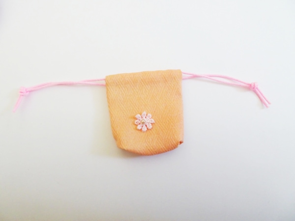 【単品】フリーサイズ お花巾着(キラキラサーモンピンク/和素材)