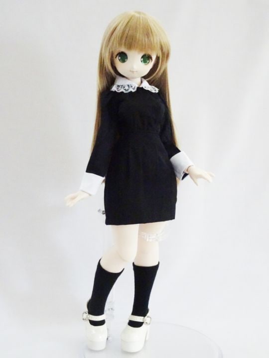MDD(L/もちあし)/アゾン45/DDP/オビツ50 レディタイトワンピース/七分袖/ミニ丈(黒)