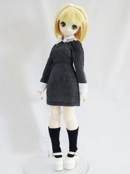 MDD(L/もちあし)/アゾン45/DDP/オビツ50 レディタイトワンピース/七分袖/ミニ丈(黒グレーストライプ)
