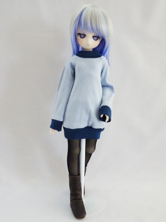 MDD(もちあし)/アゾン45/DDP タートルネックワンピース(水色×紺)