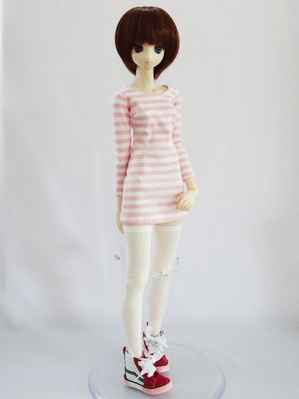 オビツ50/DDP/アゾン45/MDD(もちあし) タイトTシャツワンピース(ピンク白ボーダー)