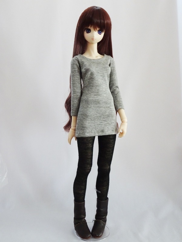 オビツ50/DDP/アゾン45/MDD(もちあし) タイトTシャツワンピース(グレー)