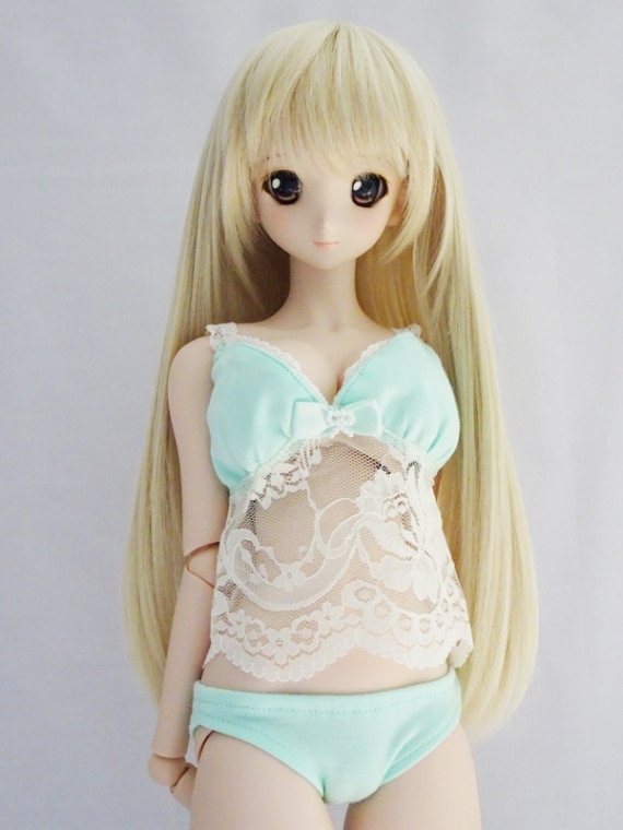 40cm~60cmフリーサイズ キャミソール&ドロワーズ*ルームウェアセット(水色)
