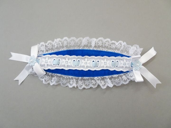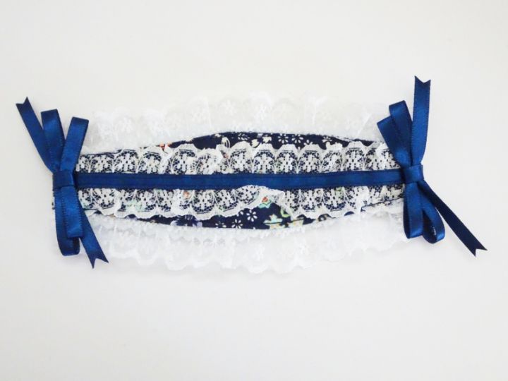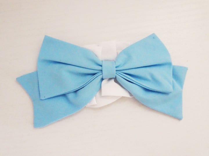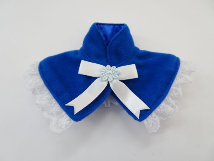 【単品】40~60cmフリーサイズ リボンつけ襟(青トイクロス)