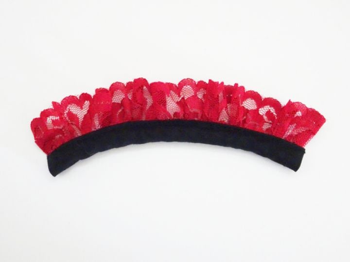 【単品】9インチ ヘッドドレス(土台なし/赤チェック×白レース)