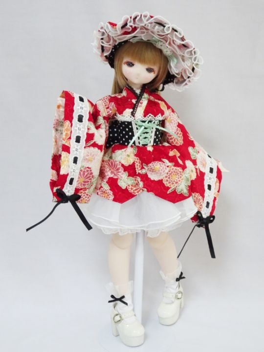 オビツ50/オビツ48/DDP/アゾン45 ちりめんミディチャイナ(赤菊/ピンクの蝶)