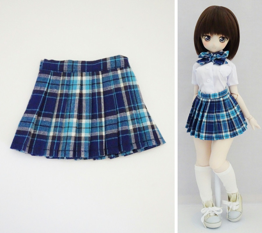 【単品】MDD/アゾン45/DDP/オビツ50 プリーツスカート/ミニ丈(アクアチェック)