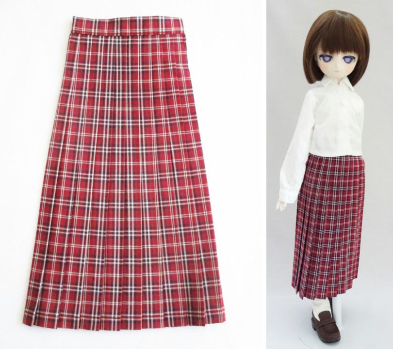 【単品】DDS/DD/AZO2/オビツ50/DDP/アゾン45/MDD プリーツスカート/ロング丈(ワイン紺ラティスチェック)