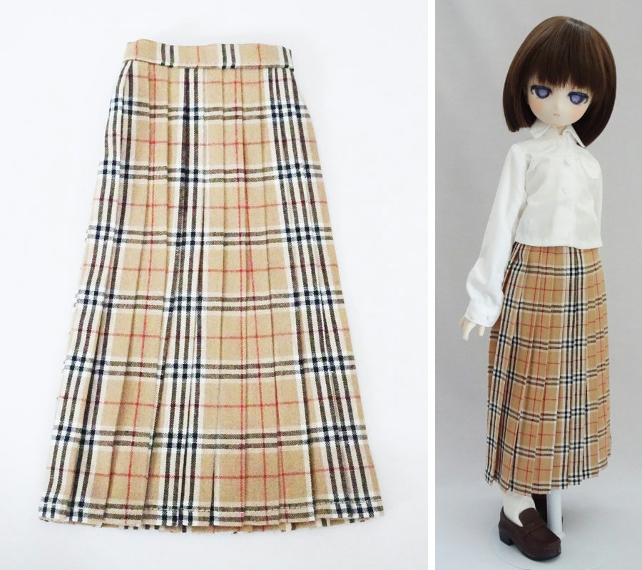 【単品】DDS/DD/AZO2/オビツ50/DDP/アゾン45/MDD プリーツスカート/ロング丈(ベージュチェック)