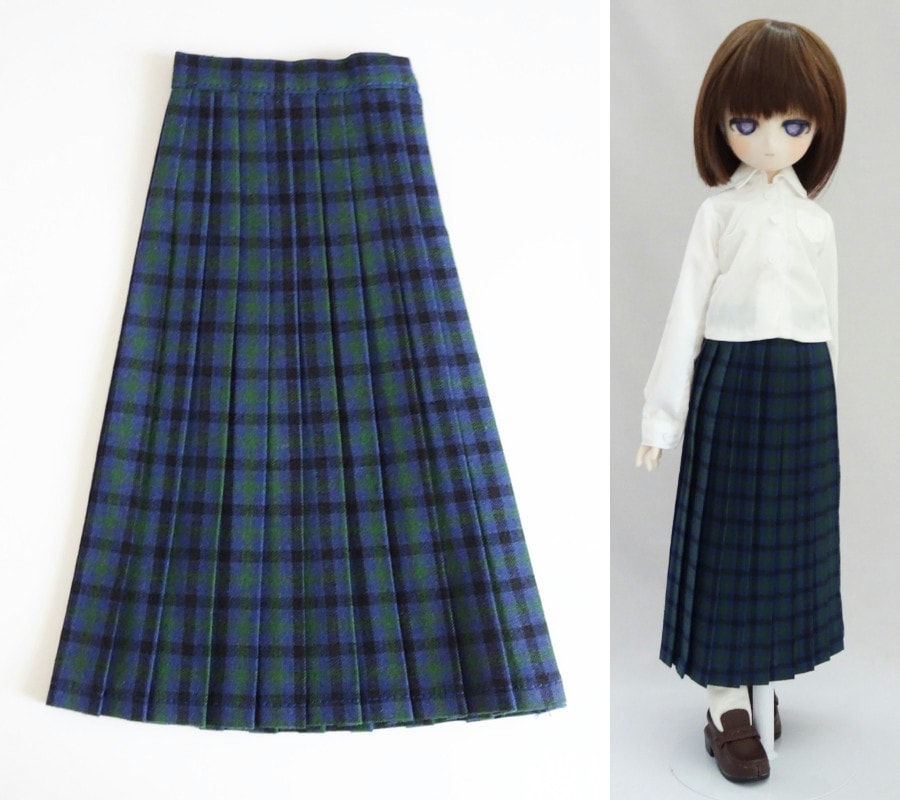【単品】DDS/DD/AZO2/オビツ50/DDP/アゾン45/MDD プリーツスカート/ロング丈(緑ラティスチェック)