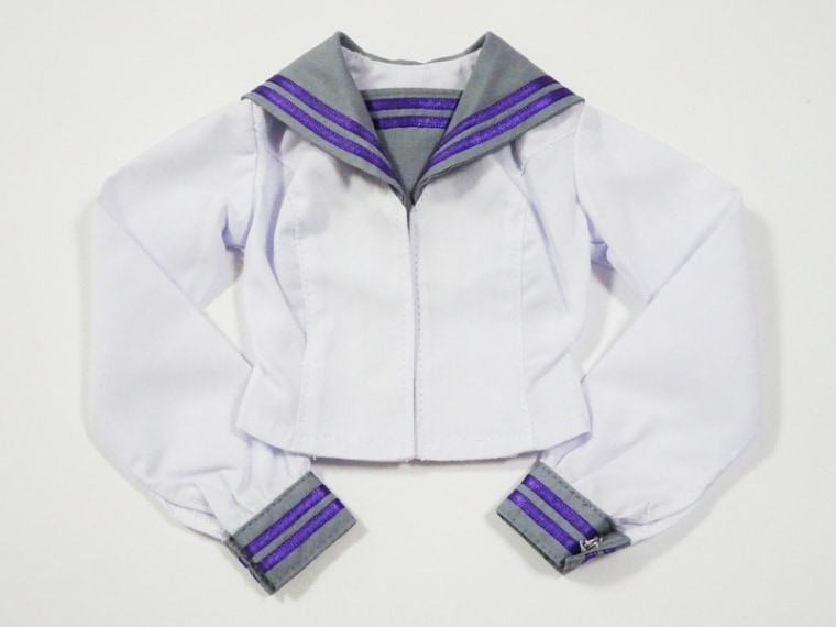 【単品/制服コーデ】DD(M.L)/DDdy/スマートドール(S) セーラー制服ブラウス/胸当て2本ライン(白&グレー/紫ライン)
