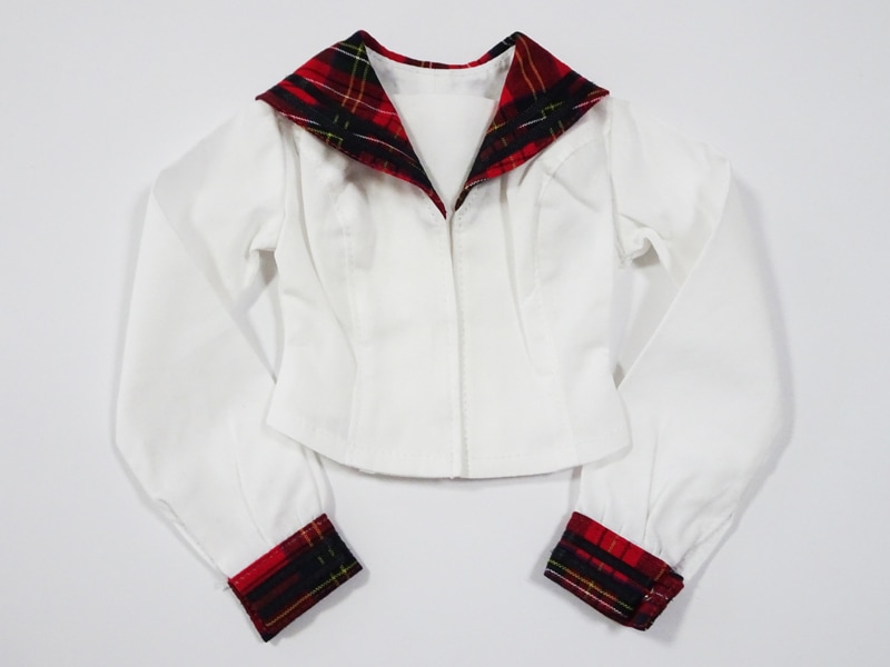 【単品/制服コーデ】DD(M.L)/DDdy/スマートドール(S) セーラー制服ブラウス/胸当て2本ライン(白×赤チェック/ピンクライン)
