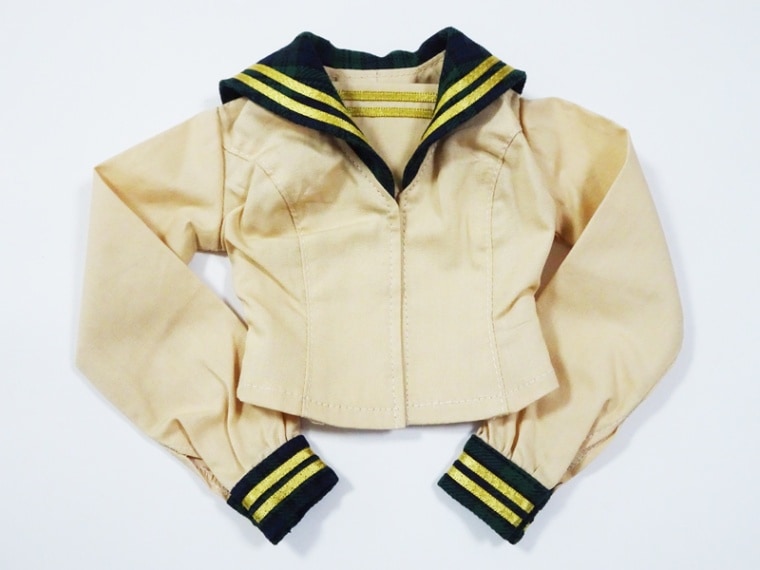 【単品/制服コーデ】DD(M.L)/DDdy/スマートドール(S) セーラー制服ブラウス/胸当て2本ライン(ベージュ×チェック/金ライン)