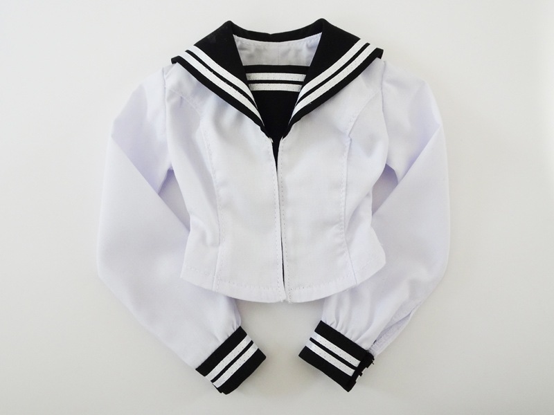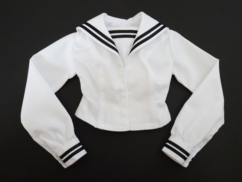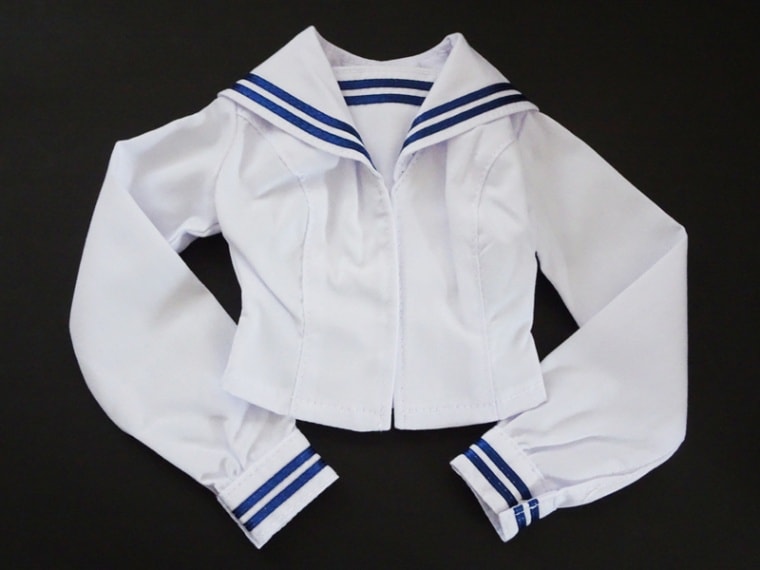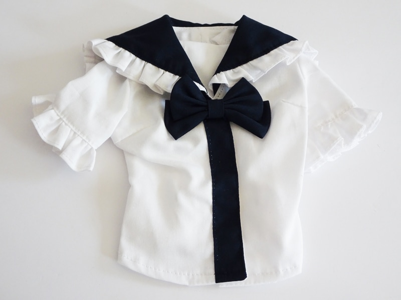 【単品/制服コーデ】DD(M.L)/DDdy/スマートドール(S) セーラー制服ブラウス/胸当て2本ライン(白/紺ライン)