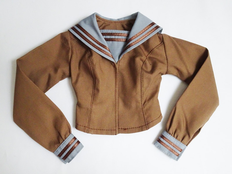 【単品/制服コーデ】DD(M.L)/DDdy/スマートドール(S) セーラー制服ブラウス/胸当て2本ライン(茶/グレー襟/茶ライン)