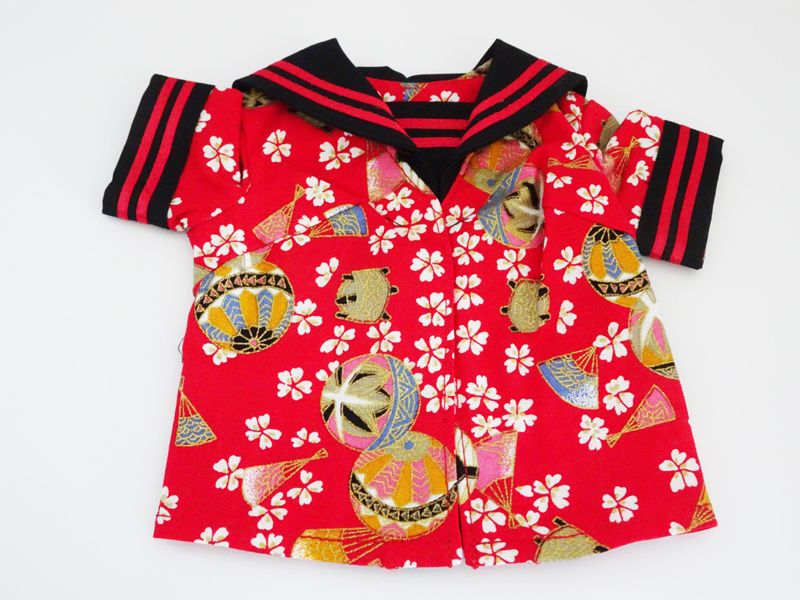 【単品/制服コーデ】60cmフリーサイズ 半袖セーラー制服ブラウス/ストレート(赤桜手毬)