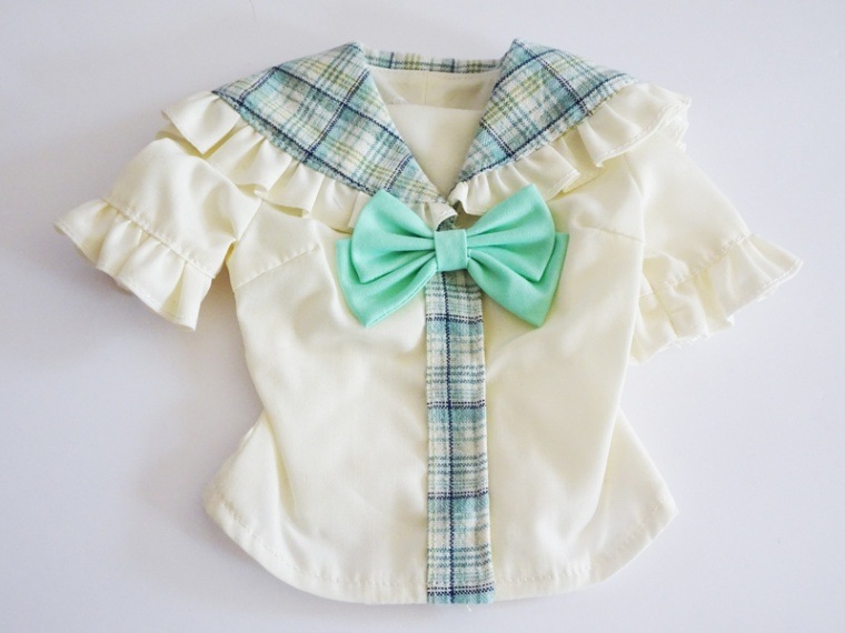 【単品】DDS/DD(S.M)/SD/スマートドール(S) フリルセーラーブラウス/半袖(ミントチェック)