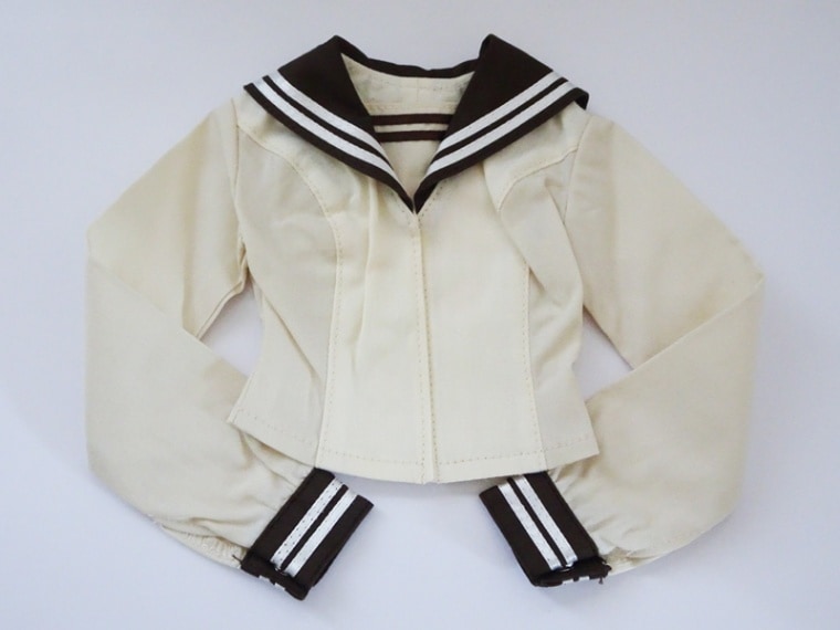 【単品/制服コーデ】DD(M.L)/DDdy/スマートドール(S) セーラー制服ブラウス/胸当て2本ライン(ベージュ/茶襟/白&茶ライン)