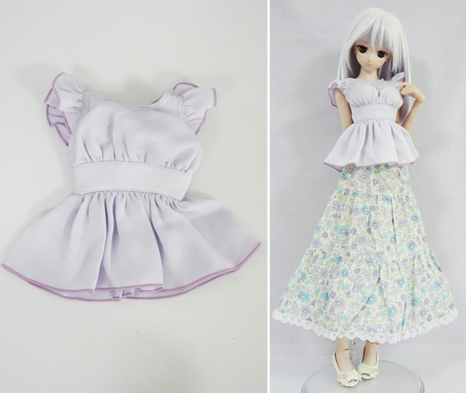 【単品】DDS/DD(S.M)/SD/スマートドール(S) フリルセーラーブラウス/半袖(ベージュチェック)