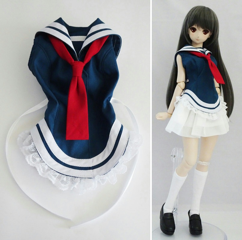 【単品】DDS/DD/スマートドール ノースリーブセーラーブラウス/フリル(レースフリル/白×紺ライン×紺ネクタイ)