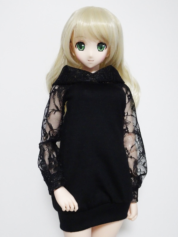 オビツ50/AZO2(G) 襟ドロップショルダーワンピース(黒&レース)