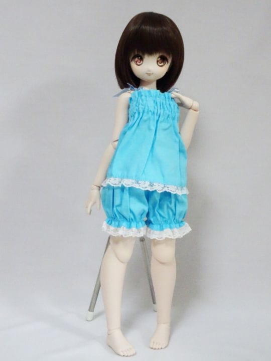 40cm~60cmフリーサイズ キャミソール&ドロワーズ*ルームウェアセット(水色)
