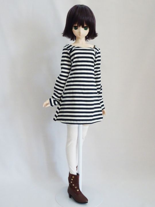 DDS/DD/DDdy/スマートドール 長袖ニットワンピース/Uネック/ミディロング丈(紺白ボーダー)