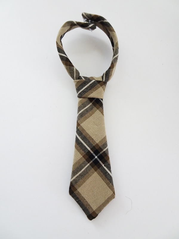 【単品】40cm~50cmフリーサイズ シャツブラウス用ネクタイ(ベージュ茶黒チェック)