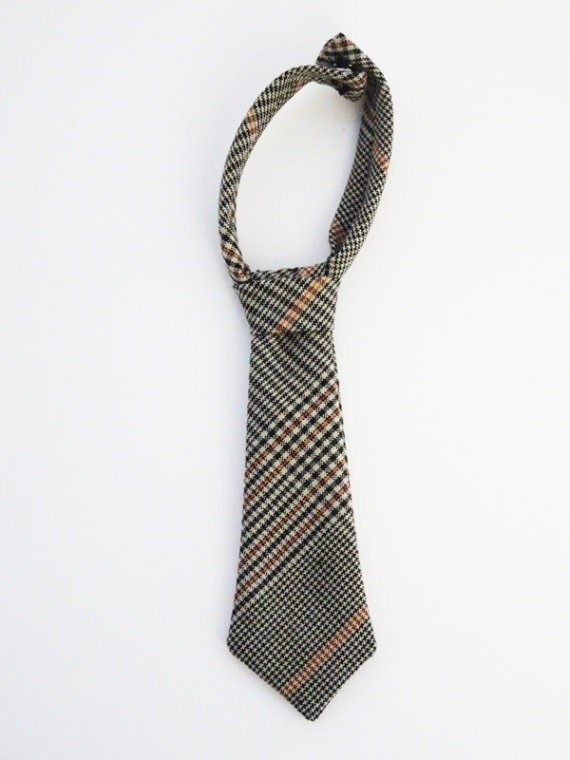 【単品】40cm~50cmフリーサイズ シャツブラウス用ネクタイ(グレンチェック/黒オレンジ)