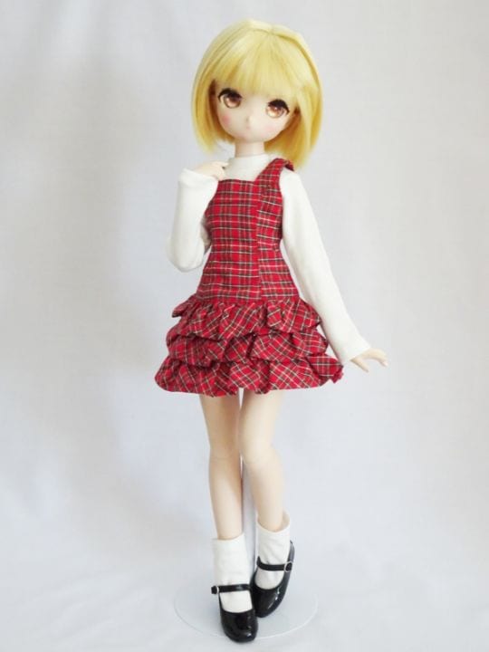 MDDもちあし2.0(L)/アゾン45/DDP/オビツ50 つけ襟ワンピース(ピンクチェック)