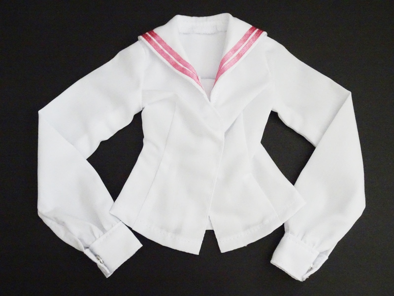 【単品】オビツ50/オビツ48 長袖セーラーブラウス/2本ライン(白/ピンクライン)
