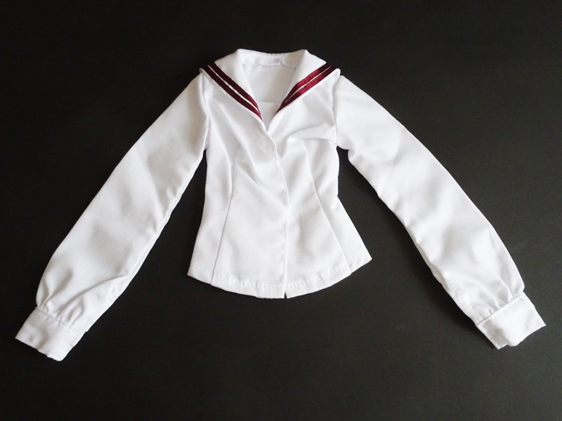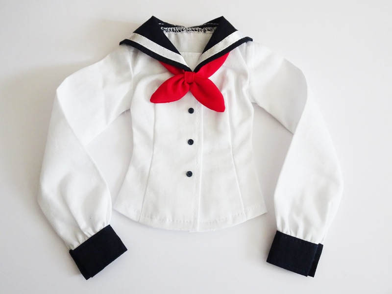 【単品】オビツ50/オビツ48 長袖セーラーブラウス/1本ライン/飾りボタン*ネクタイ付属(白&濃紺/赤リボン)