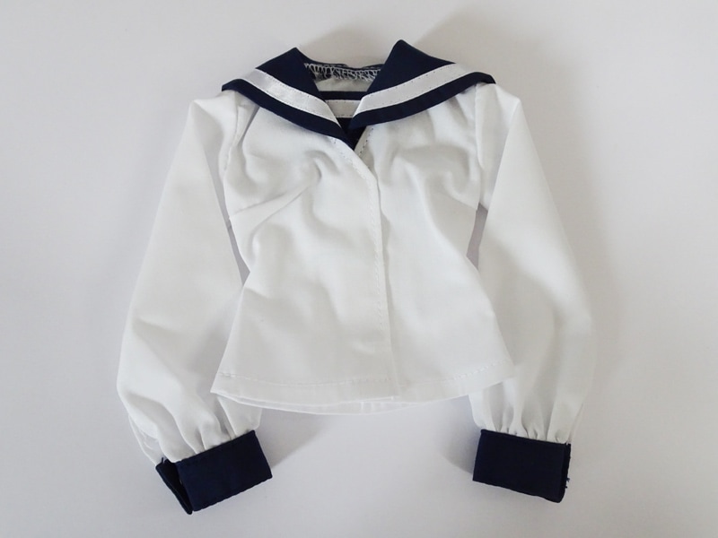 【単品/制服コーデ】MDD/DDP/アゾン45 長袖セーラーブラウス/1本ライン(白&紺/白ライン/胸当て紺)
