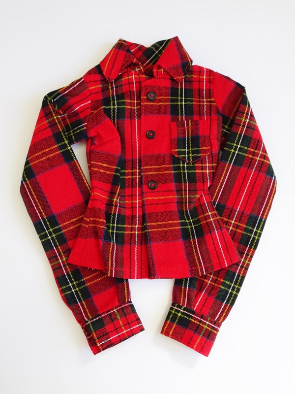 【単品】オビツ50 シャツブラウス/長袖(赤チェック2021/右前)