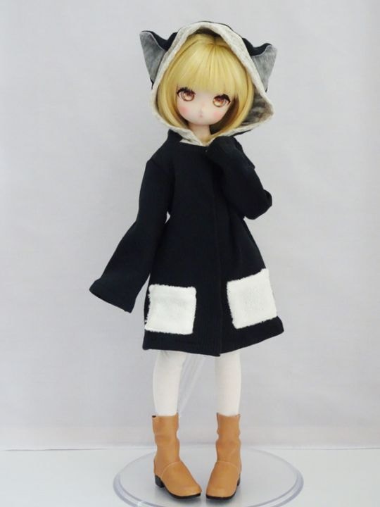 MDD/アゾン45/DDP アニマルコート/ねこ(黒ランダムリブ/白モコ)