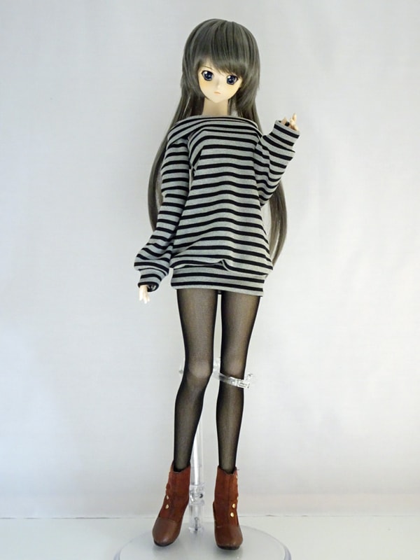 DDS/DD/DDdy/SD/スマートドール 襟ドロップショルダーワンピース(黒グレーボーダー)