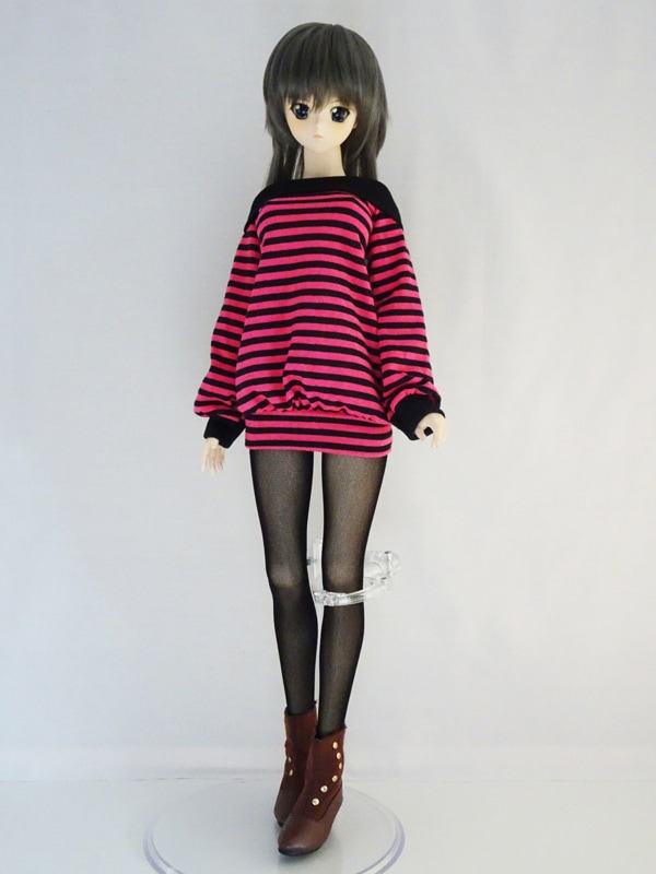 DDS/DD/DDdy/SD/スマートドール 襟ドロップショルダーワンピース(ピンク黒ボーダー)