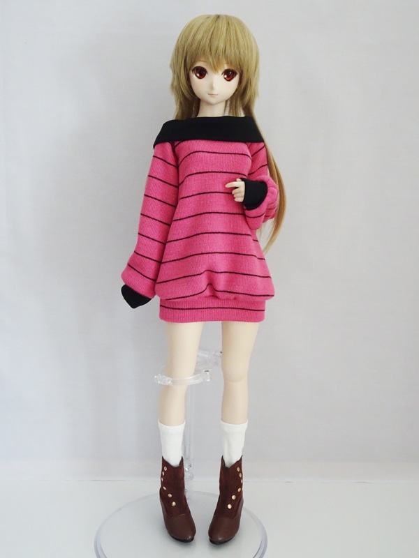 DDS/DD/スマートドール 襟ドロップショルダーワンピース(ピンク白ボーダー)