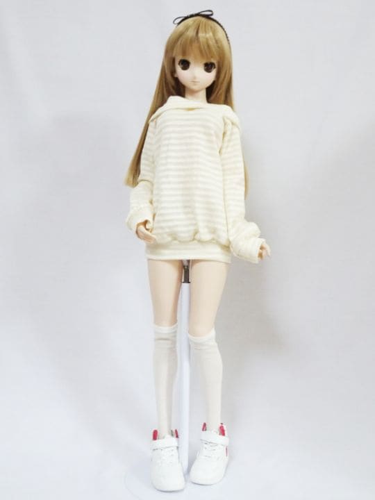 DDS/DD/DDdy/SD/スマートドール 襟ドロップショルダーワンピース(ふわ縞ホワイト)