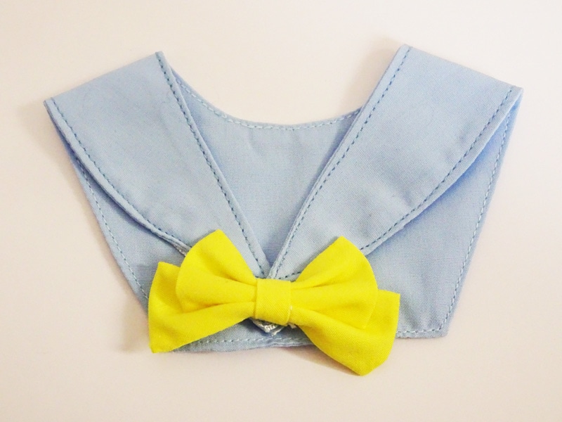 【単品】50cm~60cmフリーサイズ セーラーつけ襟(水色/黄色リボン)