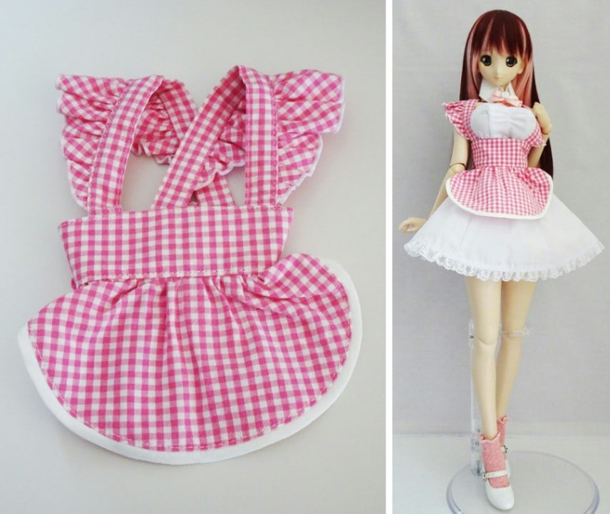 【単品】DDS/DD/DDdy/スマートドール ビスチェ丸エプロン/リボンあり(ピンクギンガム)