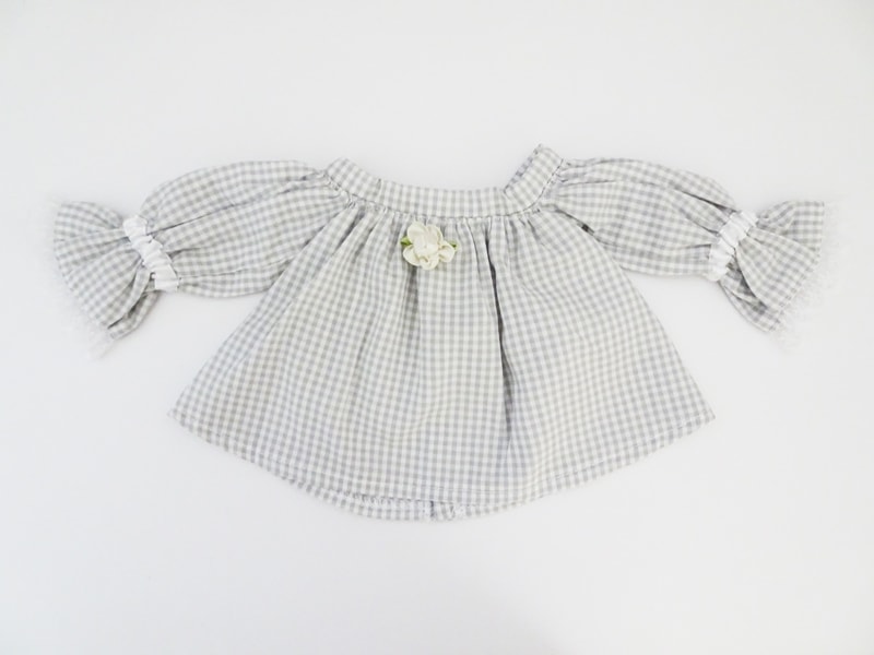 【単品】DDS/DD/DDdy/SD/スマートドール/オビツ50/DDP/アゾン45/AZO2(G)/オビツ50GGR オフショルダーブラウス/七分袖/通常丈(グレーギンガムチェック)