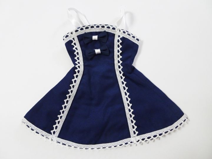 【単品】オビツ50/DDP/アゾン45/MDDもちあし(L) スウィートリボンレースジャンパースカート(紺)