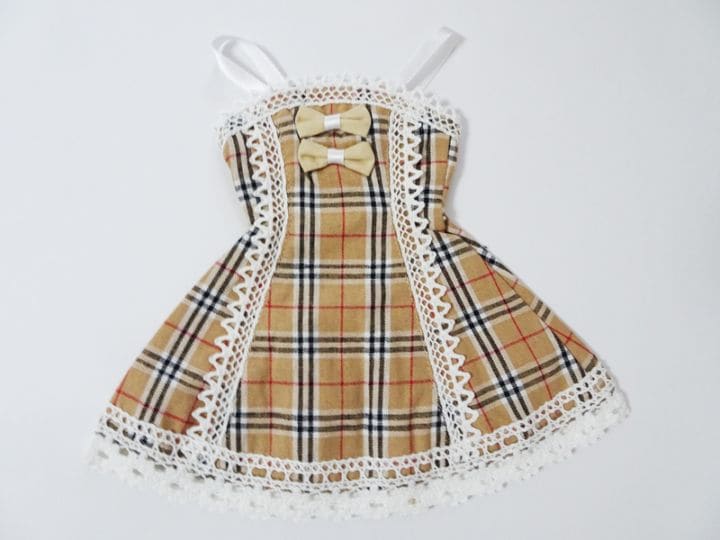 【単品】オビツ50/DDP/アゾン45/MDDもちあし(L) スウィートリボンレースジャンパースカート(ベージュチェック)